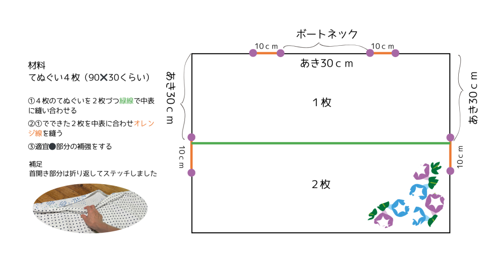 百均てぬぐい4枚で風が通り抜ける様な涼しいシャツを。