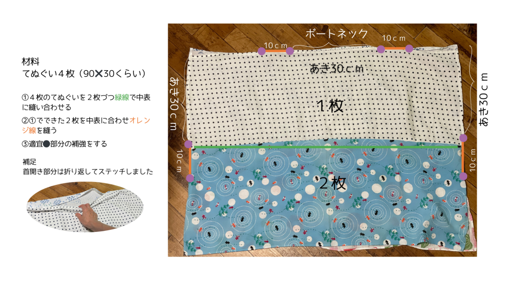 #ソーイング #簡単リメイク #てぬぐい #簡単ブラウス #アッパッパー #普段着 #シャツ #身頃たっぷり