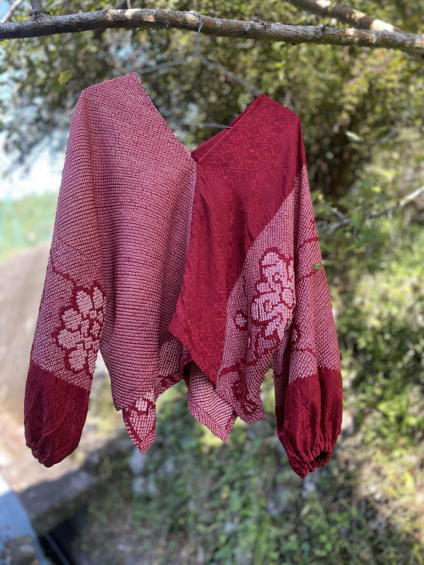 真紅の絞りの羽織りで簡単リメイク(作り方付き)〜袖丈が調整できるブラウス