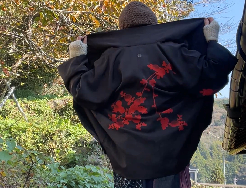 羽織り裏もそのまま使ったのでとってもあったかい♪洗ったら染めが羽織り裏に色移りしたのが想定外、、、