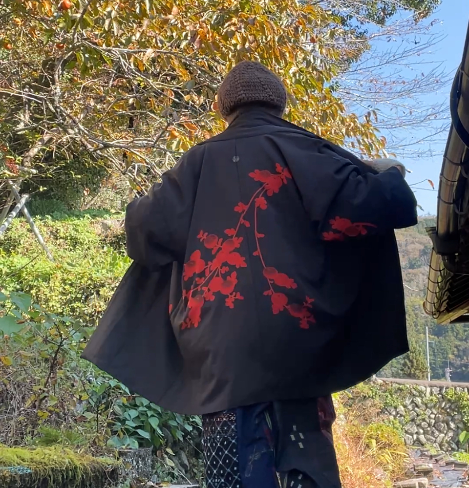 絵羽織をあったかいミドルコートにリメイク#着物リメイク